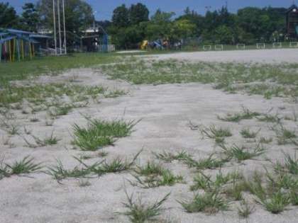 親子奉仕作業のビフォー・アフターです。まずは、体育館側から、せんだんの木の方向を見てみました。