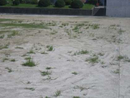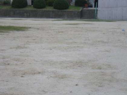 親子奉仕作業のビフォー・アフターです。続いて、せんだんの木から校舎の方向を見てみました。はっきり違いますね。