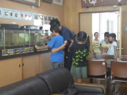 11日(月)に2年生が「伊保川生き物調査」の学習を行いました。そのあたりから、校長室水族館にやってくる子どもの数が増えてきました。2年生が最も多いですが、それ以外の学年の子どももよく覗きにやってきます。「常連さん」が、「新しいお客さん」に室内でのマナーを教えています。みんな行儀が良くて、微笑ましい限りです。
