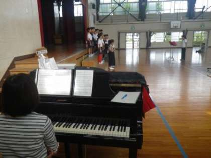 4年生は、10月18日(水)に市民文化会館で行われる「豊田市小中特別支援学校音楽大会」に出演します。そのために合唱練習を行ってきました。9月に入り、いよいよ練習も本格的になってきました。昨日は、合唱指導者の先生をお招きして、細かな技術を教えていただきました。汗を流しながら、子どもたちは頑張っていました。