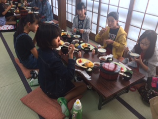 おはようございます。朝食も終わり、修学旅行も後半です。今日は奈良へ向かいます。京都の朝は青空が広がり、空気は少し冷たく爽やかですが、午後から雨の予報です。どこまで空が我慢してくれるか?鹿と触れ合うぐらいまで、もってくれればなと思っていますが。