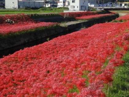 さて、今日は「秋分の日」。土曜日と重なってしまったので、振替休日はありませんが、学校の周辺にヒガンバナ(彼岸花)を見つけました。この花に関しては、小さい頃から何故だかあんまり良いイメージを持っていませんでした。3枚目の写真は、前任校の逢妻中学校区の逢妻女川の土手に広がる彼岸花群生地の写真です(2年前の写真です)。自然に生えているわけではなく、保存会の皆さんが手間暇かけて育てている見事な群生地です。ぜひ足を運んでみてください。ちょうど今頃が見頃だったような気がします。宮上町と天王町の境あたりに広がっています。