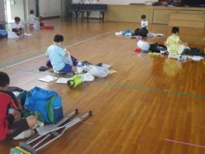 明日、5年生はキャンプに出発します。2泊3日の予定です。今日の3時間目は体育館に荷物を広げ、最終確認を行いました。忘れ物はなかったかな?
