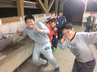ナイトハイキングで2時間近く歩き、夜食はフルーツゼリーでした。班長会で1日を振り返り、もうすぐ就寝時刻です。山は冷え込んでいます。子どもたちは皆、元気です。ご心配なく。