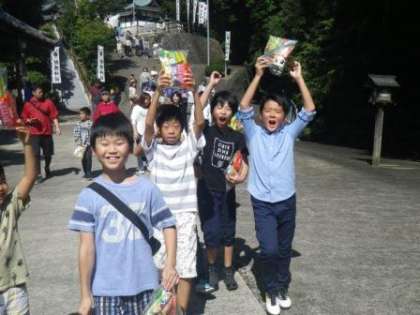 今日は午前中、保見町のお祭りの神事にご招待いただきました。秋祭りにふさわしい秋晴れの下、神事はつつがなく行われました。巫女姿の女子児童、子ども会代表でお参りする男子児童、お菓子を手に大喜びの子どもたち。祭りの行事は午後も引き続き行われます。楽しい一日にしてくださいね。