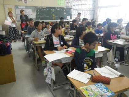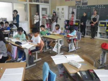 教室での授業参観の様子です。2年生と5・6年生の授業風景です。