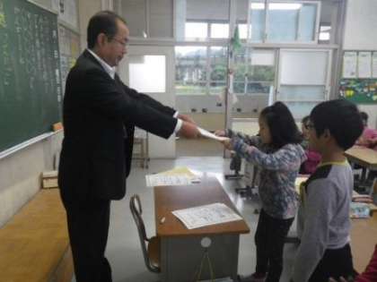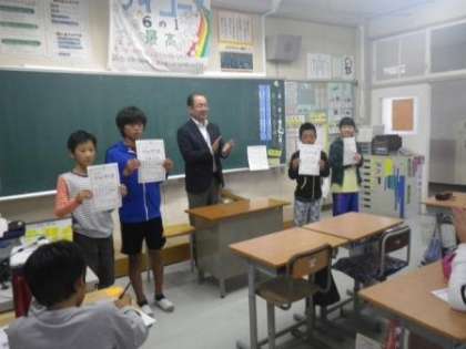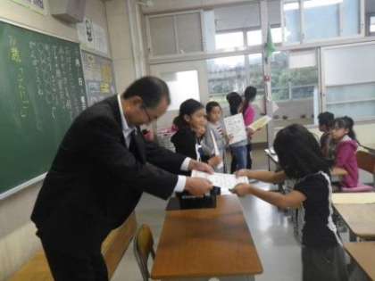 10月分の「きらり☆かがやき賞」の表彰を順次、行っています。今週は6年生、3年生と続けて表彰しました。学級をまとめた功績、陸上部の中心としての活躍、学級お楽しみ会の企画、「きらり☆ともだちカード」を多く作成したことなどに対する担任の先生からの推薦でした。月末に向けて、他の学級でも表彰を行っていきます。