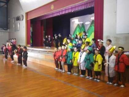 11月11日(土)の学芸会に向けて、本日、1年生から5年生までが下見会を行っています。3時間目は3年生の演技を見ました。もうかなり完成している感じでした。セリフに気持ちがこもり、歌と踊りに磨きがかかれば、当日は満点の演技になりそうです。