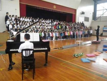 校内学芸会は午後の部も含め、すべてが終了しました。下見会で一度見せてもらった時に比べ、どの学年もずいぶん上手になっていて驚きました。11日の土曜日は、ぜひお楽しみください。写真は2年生・6年生の演技と、全校合唱の様子です。