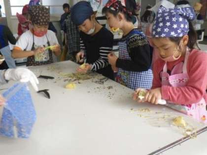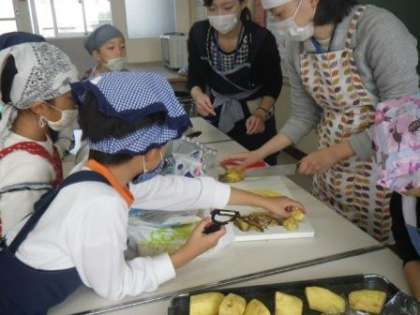 午前中に校内を回っていると、家庭科室で2年生がサツマイモの皮むきをしていました。ケガをせずに安全に皮をむくためにピーラーを使っているのに、小さなケガをしてしまった子がいたようで、申し訳なかったです。むいたサツマイモは明日調理して食べるようです。さて、何ができるでしょうか?