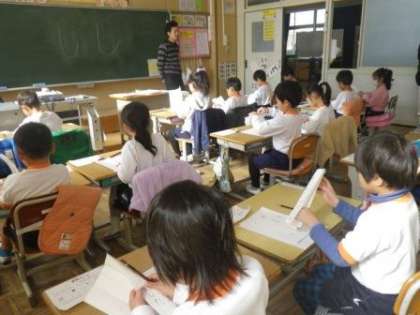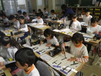 良い姿勢で美しい文字を書きましょう 〜1年生と3年生の書写指導〜