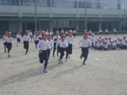 土曜日の持久走大会を前に、今日はコースを実際に走ってみる試走会を行いました。スクールガードやPTAの方にご協力いただき、安全に気をつけながら走りました。寒い中、お手伝いくださった皆様、ありがとうございました。写真は低学年(1・2年生)の様子です。