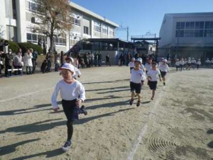 今日は抜けるような冬晴れの下で持久走大会を行いました。多くの保護者や地域の皆さんに見守られ、声援を受けながら、子どもたちは自分と戦いながら力走しました。寒い中、ありがとうございました。写真は、開会式と低学年の様子です。
