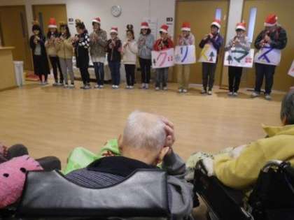 今日は、5年生が特別養護老人ホーム「保見の里」を訪問し、一足早いクリスマス会を行いました。7月に初めて訪問し、今回は5か月ぶり2回目の訪問になりました。3つの部屋に分かれて、「きよしこの夜」のリコーダー演奏を聴いていただき、その後は、クリスマスカードをお一人お一人に手渡しました。中には、涙を流して喜ばれる高齢者の方もみえました。今後も「保見の里」との交流をはじめ、福祉に関する学習を充実させていきます。