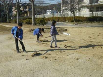 運動場をきれいにならしたよ 〜大掃除への取組 その4〜