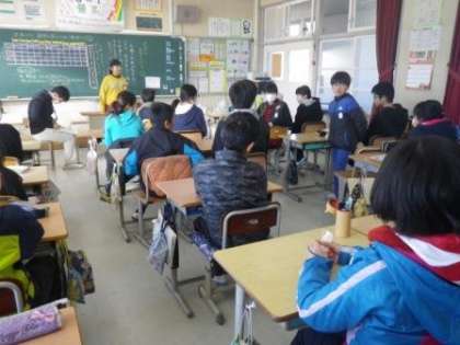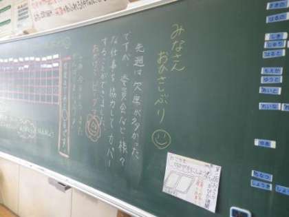 6年生が今日から学校に復帰しました。これで、全部の学年が1週間ぶりに学校で顔を合わせました。6年生は、朝の会で今日のめあてを「協力して遅れを取り戻そう」に決め、学級閉鎖でお休みだった金曜日と月曜日の2日分の授業や諸活動の遅れを挽回しようと気合いを入れていました。インフルエンザなどでお休みしている児童は人数は減ってきましたが、まだいなくなったわけではありません。今後も手洗いや換気などに心がけていきます。