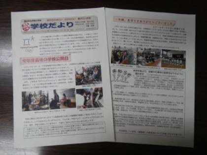 本日、お子さんに学校だより第39号を配付しました。ぜひご一読ください。学校公開日の様子を中心に掲載しています。来年度の授業や行事などの変更点についてもお知らせしました。