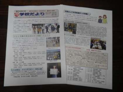 本日、お子さんに学校だより第40号を配付します。ぜひご一読ください。遅くなってしまいましたが「なわとび集会」の様子や、6年生が卒業に向けて行っている取組などについてお知らせしてあります。3月の行事予定も載せておきました。ご確認ください。