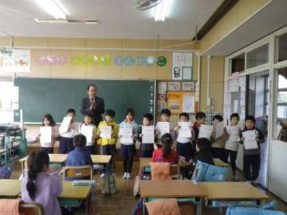 2月最終日。なぜ2月は28日で終わるのか?不思議に思ったことはありませんか?その理由は・・・。ここで述べると長くなるので、ネットなどで調べてください。わかりやすく解説された資料がたくさん出てきます。2月の最終日。1年1組と2組の教室で、たくさんの子どもたちにきらりかがやき賞を渡しました。4月から入ってくる新1年生の良いお兄さんとお姉さんになるための準備期間に入ってきた1年生。頑張っています。