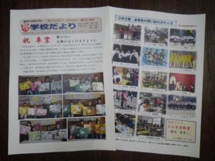 今日、学校だより第43号をお子さんに配付しました。ご一読ください。6年生は今回が最終になります。今回は紙面のほとんどが、6年生に関連する写真です。6年生の保護者の皆様、これまで読んでいただき、ありがとうございました。