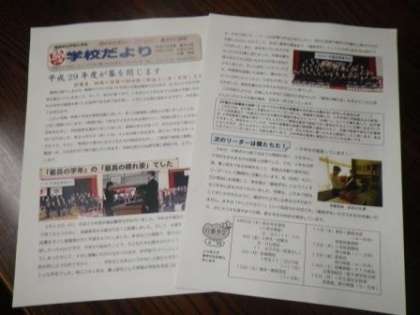 本日、お子さんに学校だより第44号を配付しました。今年度の最終号です。4月当初の予定を載せましたので、ご確認ください。1年間、読んでいただきましてありがとうございました。