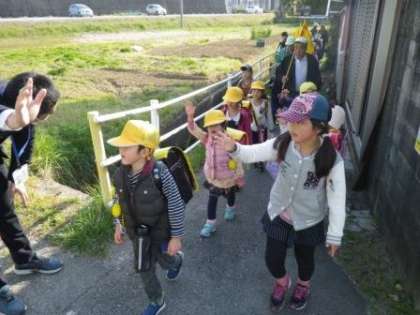 ご安心ください。無事に学校にたどり着きました。 〜1年生 通学団登校初日〜