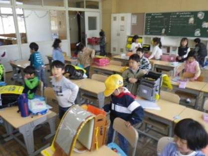 冷え込みましたが、良い天気になりました。今日は、1年生の通学団登校の初日でした。昨年と一昨年はひどい雨の中での登校初日でしたが、今年は良かったです。教室では、やや疲れ気味の子もいましたが、体調を崩している子はいませんでした。しばらくは、多くのエネルギーを消費すると思いますが、すぐに慣れます。今日から3日間は、1年生は11時30分お迎え下校です。