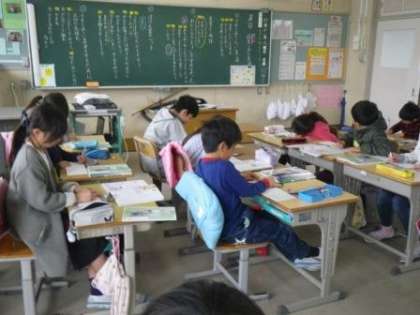 今年から、小学校では道徳が「教科」になりました。中学校では来年度からそうなります。とは言っても、これまでも週1時間は道徳の時間がありましたから、子どもたちにとっては大きな変化はありません。ただ、教科ですから成績がつくようになります。今年度の通知表から、道徳の欄を設けます。数字や記号による評価ではなく文章表現で評価します。写真は、今日の午前中に4年生の教室で行われていた道徳授業の様子です。