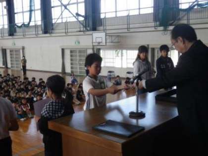 今朝はとても爽やかな青空が広がっています。1時間目の前に全校集会を行いました。1年生にとっては、小学校で初めての全校集会でした。委員会の前期委員長、副委員長と4年生以上の学級代表を認証しました。それぞれの立場で、一生懸命に役目を果たしてくれることを願っています。もちろん教職員で支えていきます。