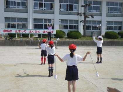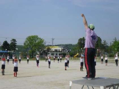 実質的には4月の最終週に入りました。今週が終わるとゴールデンウィークに突入です。明日からは家庭訪問で4時間授業。しかも、明日と明後日は雨予報。運動会に合わせるためにも、天気の良い日の体育の授業は1時間1時間がとても大切になります。今日の1時間目に運動場で行われた、5年生と6年生のトーチワークによる演技の練習の様子です。