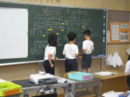 連休明け。「授業の様子はどうだろう?」と、カメラを手に教室を回ってみました。写真は1年生の音楽、2年生の算数、3年生の理科の授業の様子です。久しぶりでも、落ち着いて授業に臨んでいました。