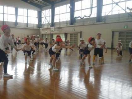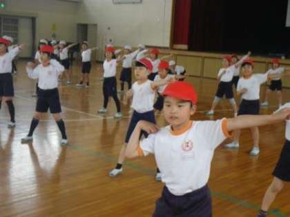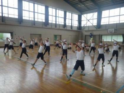 2時間目は、3年生と4年生が「ソーラン」を踊っていました。「どっこいしょ、どっこいしょ」「ソーラン、ソーラン」の元気なかけ声とともに、キレの良い踊りを決めていました。低学年の可愛さとは少し違って、かっこよさも感じました。これもまた、ご期待ください。