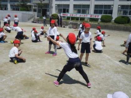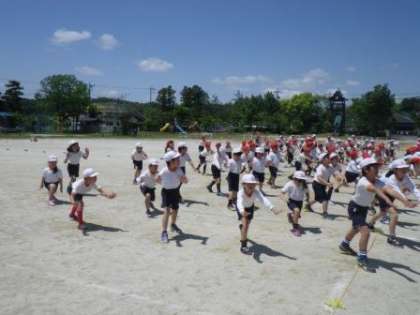 3時間目は、3年生と4年生が「ソーラン」の練習を行いました。最初は狭い間隔で踊っていましたが、だんだん運動場を大きく使って、迫力のある踊りになっていきました。途中の休憩時間には、友だち同士で踊りを教え合う姿が見られました。みんなで、良い演技にしようとする気持ちが伝わってきました。