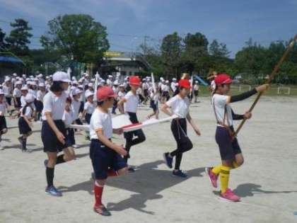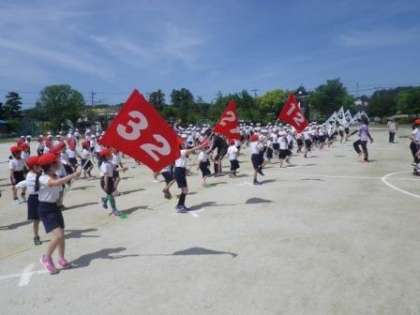 今日の2時間目、運動会の全校練習を行いました。今日は初めて、入場行進と開閉会式の練習をやってみました。暑い中でしたが、だらけることなく、しっかりできていた子が多くいました。きびきびした動き、元気な返事や歌声など、まだまだ磨きがかけられそうです。本番で素晴らしい姿をお見せできるよう、残り1週間、しっかり練習してきます。