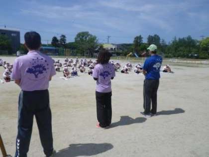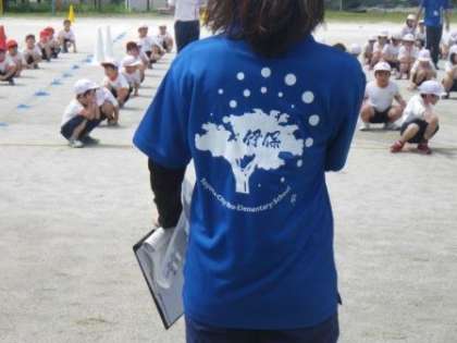 昨年、運動会前に作成した「伊保小ポロシャツ」。昨年のライトパープルに加えて、今年はロイヤルブルーのポロシャツを新たに作りました。デザインは、昨年までと同じで背中に、本校のシンボルである「センダンの木」がデザインされています。運動会当日は、職員がどちらかの色の「伊保ポロ」を着用しているはずです。