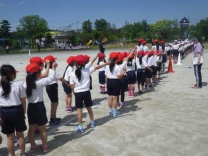 帽子取り、くす玉割り、綱引きの練習を行いました 〜本日の運動会全校練習〜