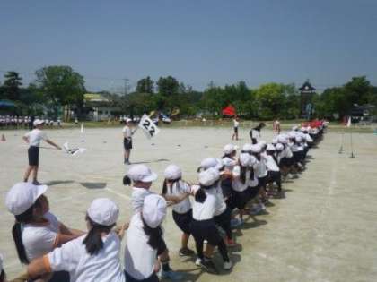 今日の2時間目は、昨日に引き続き、全校での運動会練習を行いました。今日は綱引きと帽子取りを実際に行いました。練習とは言っても、子どもたちは全力で取り組んでいました。男子の帽子取りは、特に身体接触が伴います。爪が長いと他の子を傷つけてしまったり、自分自身もケガをしたりします。保護者の方で、お子さんの手の爪を確認しておいてください。もちろん女子もお願いします。