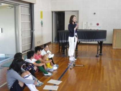 運動会が終わり、代休日をはさんだ今日は、全校集会から1日が始まりました。私からは、「気持ちを切り替え、次は授業を頑張りましょう」という目標を与えました。運動会担当の先生からは、運動会で活躍した高学年児童へのねぎらいの言葉、生活指導の先生からは、友だちの良さを見つける「きらり☆ともだちカード」の取組について話がありました。
