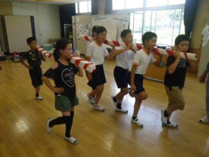 写真は、「木遣り」の練習風景です。田籾町の児童が中心になって活動しています。4年生は、まず歌詞をしっかり覚えることから始めています。