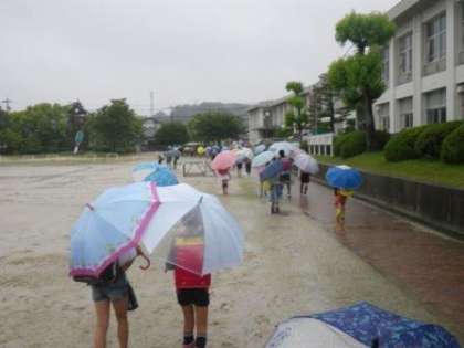 今日は朝から雨がしっかり降り続いています。数日前に、「米作り名人」の「はっぴー農産」さんから、「水曜日は雨なので、予定していた5年生の田植えは延期しましょう」と連絡がありましたが、お見事な判断です。「餅は餅屋」ではありませんが、その道のプロに従うことは大切ですね。写真は、今朝の子どもたちの様子です。傘をさして、雨の中を歩いてくるのは、エネルギーをかなり消耗するようです。スクールガードや付添の保護者の皆様、ありがとうございました。