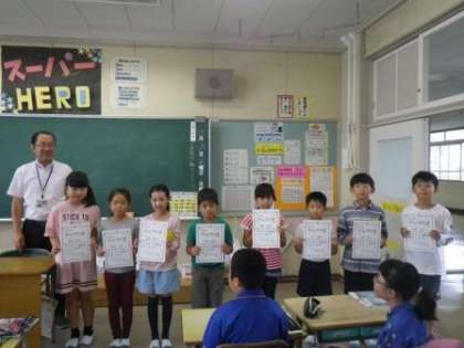 今朝は、4年2組の教室できらりかがやき賞の表彰を行いました。8名の児童が担任の先生から推薦されました。8名とも異なる理由での推薦でした。自分の役割をきちんと果たそうとしている子や、月例テストに向けて人一倍努力をしている児童などが選ばれていました。きらりかがやき賞は全員にチャンスがあります。伊保小の全児童が、一度は受賞するようにしたいと思っています。