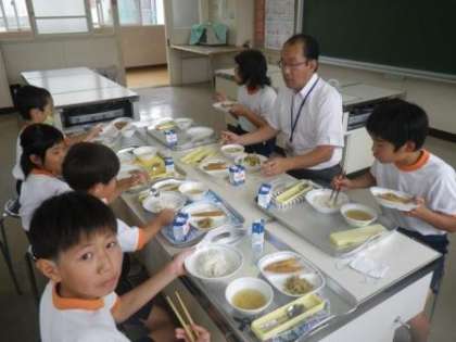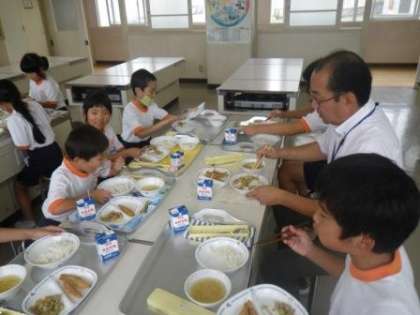 今日から、「フレンドランチ」を始めました。これは、フレンド班(縦割り班)ごとに、私(校長)を囲んで給食を楽しむ企画です。全部で10のフレンド班があり、AとBの二つに分かれていますので、合計で20回のフレンドランチを行います。今日が記念すべき第1回でした。6年生のリーダーの「記念すべき第1回のフレンドランチ、いただきま〜す!」のあいさつで、楽しい時間を過ごしました。初めてで、いろいろバタバタしてしまい、あっという間に終わってしまいました。