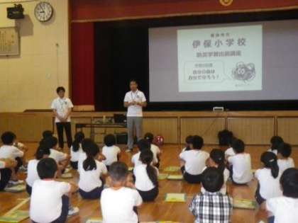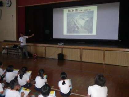 学校公開日の1時間目、4年生は体育館で「防災学習出前講座」を受講しました。豊田市役所防災対策課より職員の方に来ていただき、地震や風水害、土砂災害などについて実際の写真を見ながら、学習を深めました。東海豪雨の時の、矢作川や豊田スタジアム周辺の様子の写真もあり、災害を身近なものとして考えることができたようです。今後の防災学習にうまくつなげていきたいです。