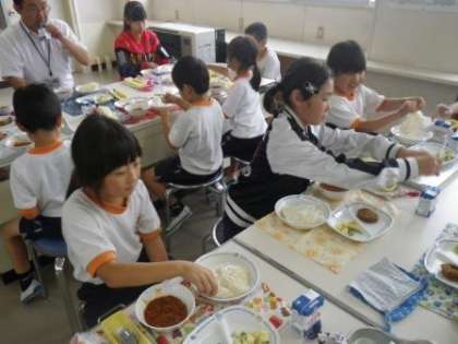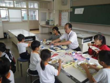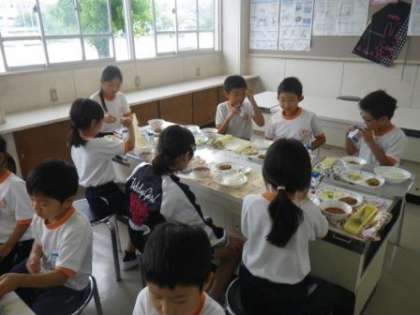 先週の月曜日に続いて、今日は第2回目の「フレンドランチ」を行いました。今日は13名の児童と給食を共にしました。給食の好きな献立を話したり、嫌いな食べ物を発表したりしながら、時間を過ごしました。ソフトめんの袋が開けられない1年生の手助けをする6年生の姿、みんなの食器をせっせと片付ける5年生男子の姿など、普段の給食ではなかなか目にすることができない場面を見ることができました。縦割り班活動の良さですね。