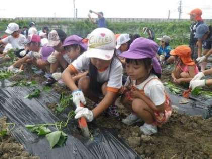 大きなサツマイモができるといいね 〜2年生 園児とのサツマイモ苗植え 2〜