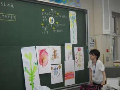 昨日6月20日(水)の5時間目、4年1組の図工の授業研究会を行いました。子どもたちは、事前に紙粘土で制作した「まか不思議な種」から、「まぼろしの花」が咲いていく様子を、画用紙に想像力豊かに描いていきました。子どもたちの造形活動に臨む様子を、伊保小の全教員と、他校からお招きした美術教育に堪能な先生とで参観しました。児童の下校後には、授業の様子をもとに、子どもの思いを作品にうまく引き出すための手だてについて、話し合いました。
