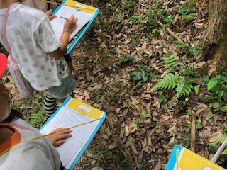 最後にギフ蝶の産卵場所になるカンアオイの生息地を見学し、ギフ蝶についてのお話を聞きました。