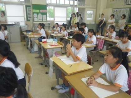 今日は学校公開日でした。1時間目から3時間目までの授業を公開させていただきました。天候が悪い中、多くの保護者や地域の方にご来校いただきました。授業の中には、保護者の方にインタビューをするという保護者参加型のものもありましたが、御協力いただき、ありがとうございました。次回は、9月10日(月)を予定しています。この時は、親子奉仕作業とPTAバザーも行う予定です。