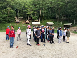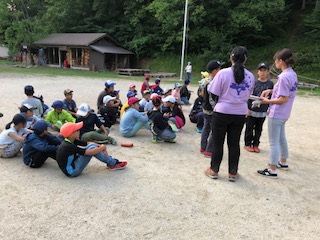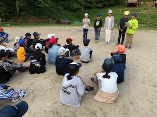 夕食が終わり、夕べのつどいです。ヒグラシの鳴き声が山深さを感じさせてくれます。この後、ナイトハイキングになります。