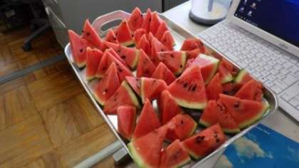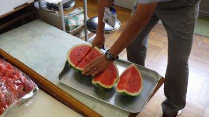 今年は職員室で包丁を入れました 〜スイカパーティー その1〜
